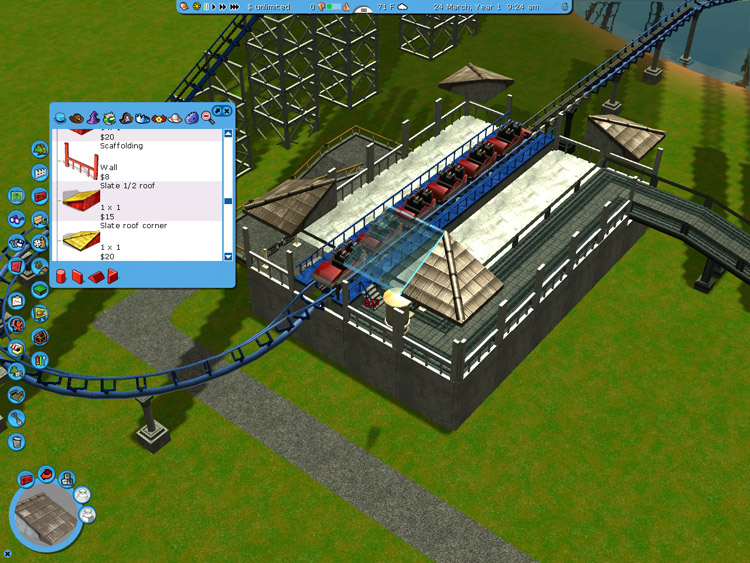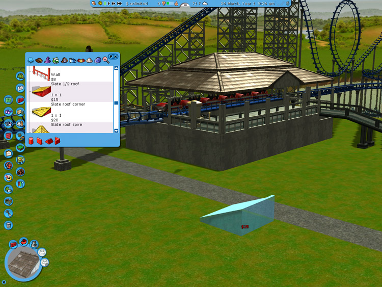 I have picked the colors of my ride and added in a queue line and exit ramp.