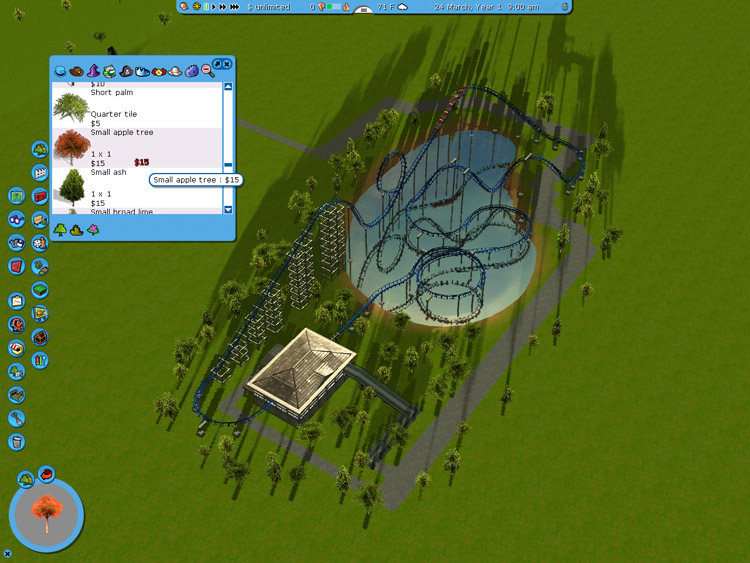 I added my side walks first then started placing trees.